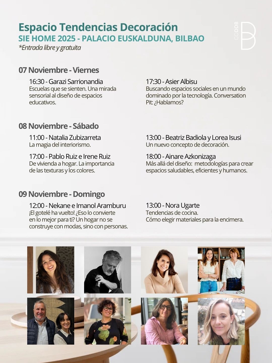 El Salón Inmobiliario de Viviendas y Decoración de Euskadi – SIE HOME 2025 celebra este año su 19ª edición los días 7, 8 y 9 de noviembre en el Palacio Euskalduna de Bilbao, consolidándose como el evento de referencia del sector en Euskadi. Desde el Colegio Oficial de Decoradores y Diseñadores de Interior de Bizkaia (CODDB) participaremos nuevamente en el encuentro con una destacada programación de actividades dentro del “Espacio Tendencias Decoración”, un área especialmente concebida para acercar al público las últimas novedades en diseño de interiores, estilos de vida y decoración.